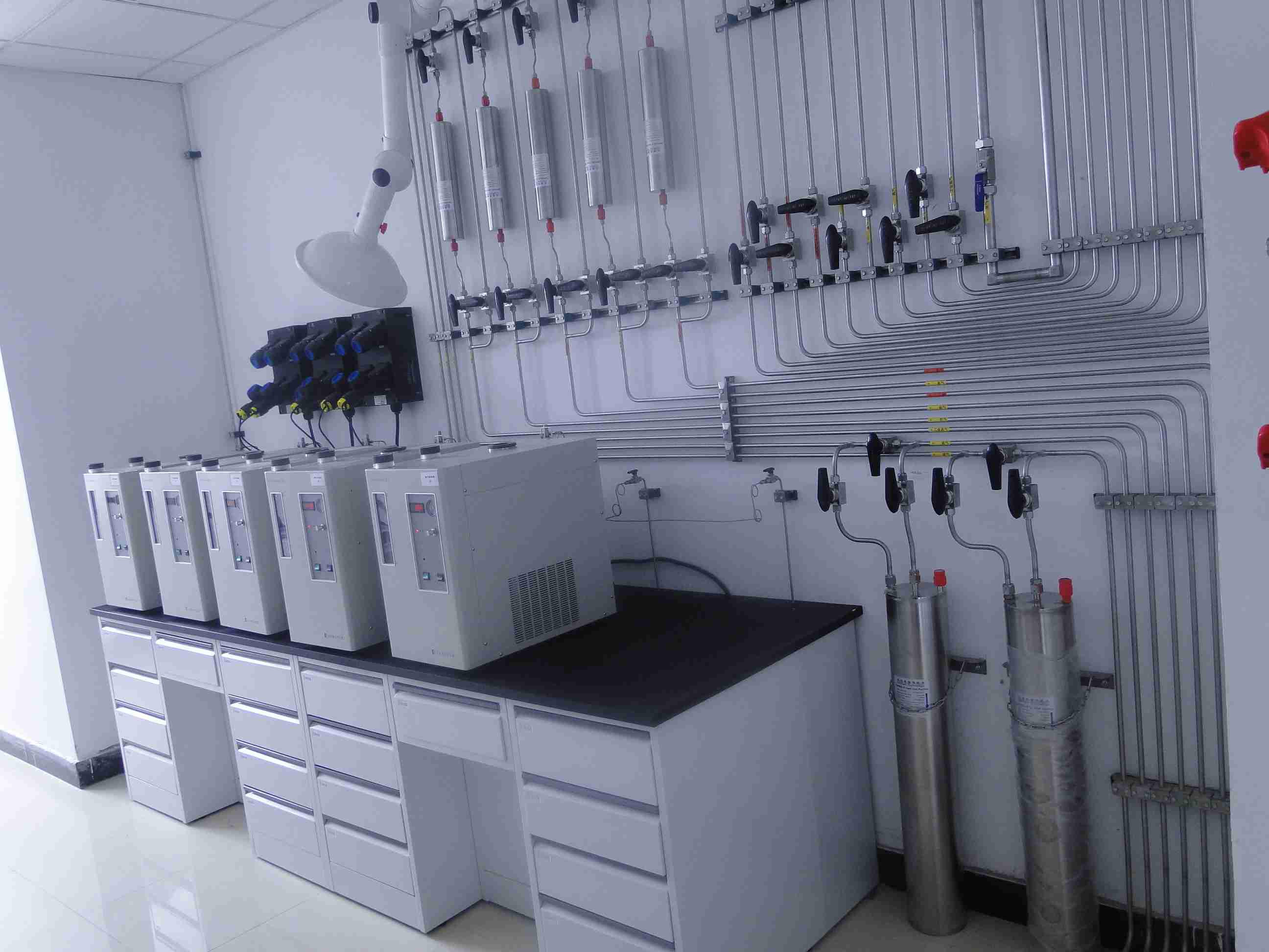 實驗室氣體管路工程主要材質為不銹鋼電解無縫鋼管,所有氣體管路的連接采用無縫焊接方式,管路最好安裝在天花板下方,沿著墻壁來進行布局,便于檢查和維修,實驗室氣體管道工程采用集中供氣有以下優點: